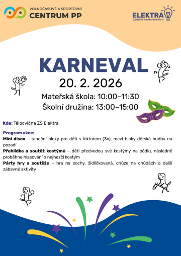 Pro mateřskou školu a školní družinu je v tento den připraven karneval ve spolupráci s Centrem PP – viz přiložený letáček.