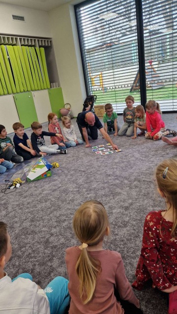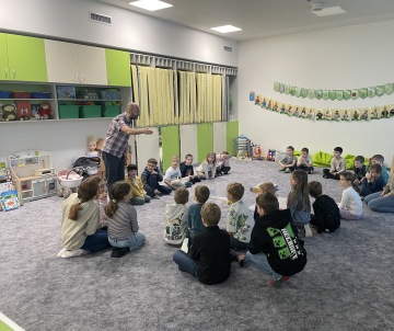 Předškoláky ze tříd Světlušky, Sluníčka a Hvězdičky navštívili žáci ze 4.A s panem učitelem Frišem.