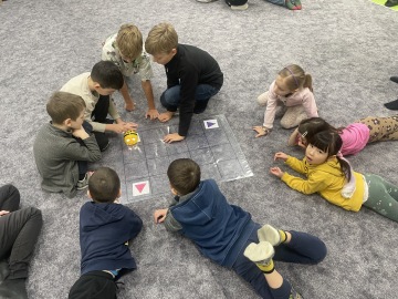 Čtvrťáci nás naučili programovat robotické včelky a myšku, abychom je dovedli do cíle.