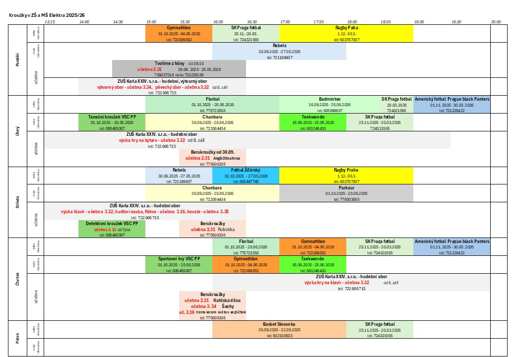 Kroužky dětem nabízí možnost objevovat nové zájmy, rozvíjet talent i trávit čas s kamarády v bezpečném a podnětném prostředí. Nabídka je pestrá a zahrnuje sportovní, kreativní, jazykové i technické aktivity, aby si každé dítě mohlo vybrat to, co ho skutečně baví.